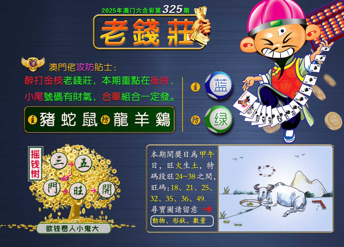 | 第325期 | 今期:五行买水,金,生肖:兔虎猪狗马羊,有财来。 | 开?00准 |