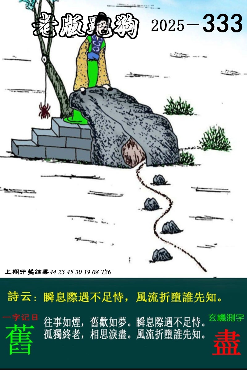 333期老版跑狗一字記之曰:【售】 詩雲:瞬息際遇不足恃,風流折誰先知! 往事如煙,舊歡如夢。瞬息際遇不足恃! 孤獨終老,相思涙盡。風流折墮誰先知! 玄機測字:《盡》 解:孤獨終老,独字生肖:鼠牛虎兔马羊。。 ============================ |