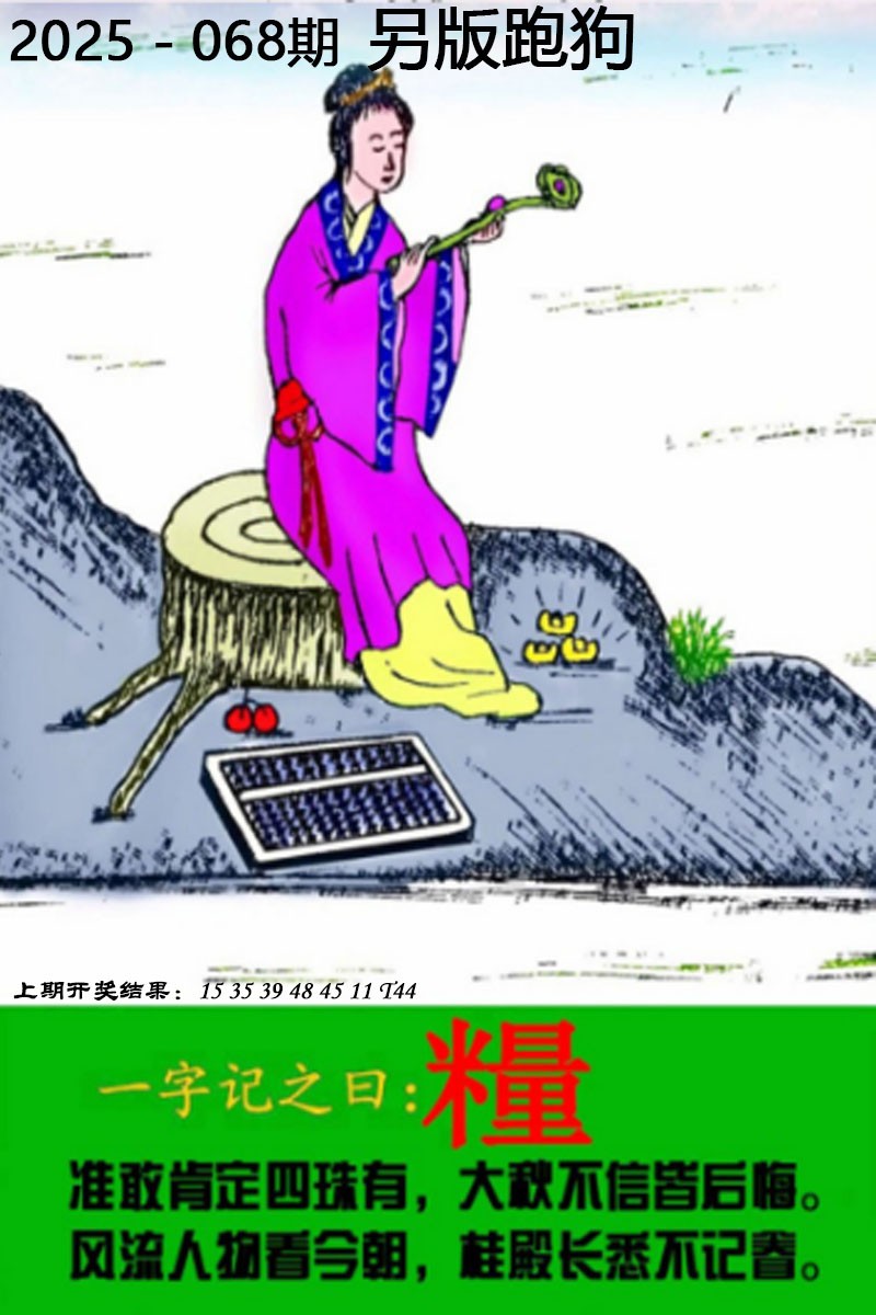 068期另版跑狗一字記之曰:【逢】 天上神仙有几何,挟天子以合天下。千载难逢好机会,闭目禅坐苦修行。 解:千载难逢好机会,吉美:兔龙蛇马羊鸡。 ============================ 067期另版跑狗一字記之曰:【骤】 辰龙回宫闻报捷,罗汉本来爱单身。飘风骤雨惊飒飒,知难而上好事来。 解:飘风骤雨惊飒飒,凶丑:鼠牛虎猴狗猪 ============================ 066期另版跑狗一字記之曰:【釉】 金枝玉叶最娇贵,春风得意发财时。红釉点灯苦读书,春光灿烂天气好。 解:红釉点灯苦读书,勤奋的生肖,牛马猴鸡狗龙 ============================ |