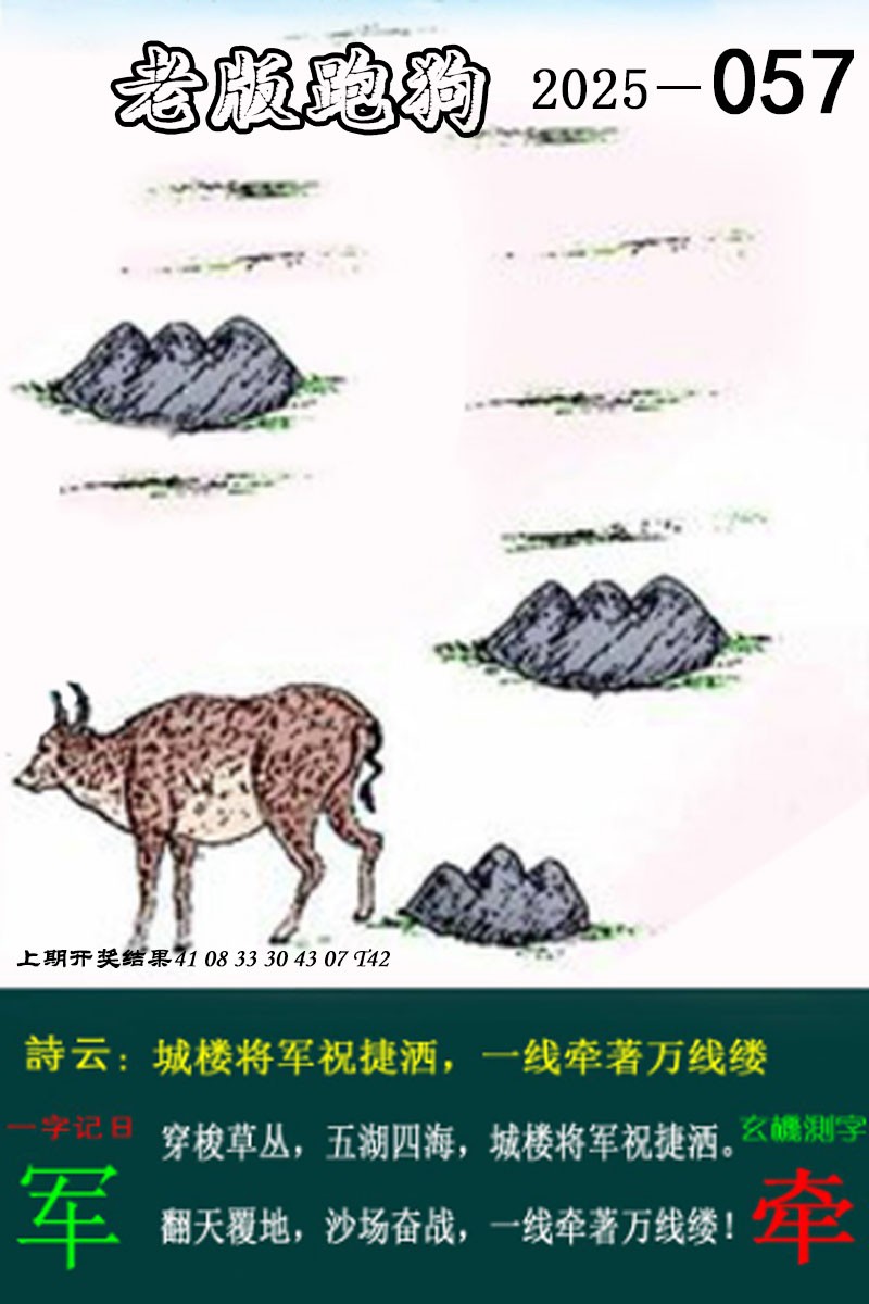 057期老版跑狗一字記之曰:【虹】 詩雲:等到葉落伴風随,收拾心情早歸去。 默默地等,心中有誰,等到葉落伴風隨! 原地踏步,由好變衰,收拾心情早歸去。 玄機測字:《等》 解:由好變衰,凶丑:鼠牛虎猴狗猪 ============================ 054期老版跑狗一字記之曰:【翼】 詩雲:難得共融天與地,日色高升月低微。 比翼雙飛,貌合神離。難得共融天與地! 初生牛儿,早春二月,日色高升月低微。 玄機測字:《高》 解:比翼雙飛,解双: 牛羊兔蛇鸡猪 ============================ 053期老版跑狗一字記之曰:【欲】 詩雲:三言两语难说清,两意相投合一处。 珠玉在前,心有所属。三言两语难说清! 觀點角度,随心所欲。两意相投合一处。 玄機測字:《時》 解:觀點角度,随心所欲,吉美:兔龙蛇马羊鸡 ============================ 052期老版跑狗一字記之曰:【舟】 詩雲:千年永定乾坤位,珠光宝气一身新。 何苦來由,爭强好門。千年永定乾坤位! 万里碧空,風雨同舟。珠光宝气一身新。 玄機測字:《位》 解:万里碧空,風雨同舟,合字生肖:龙蛇猴鸡狗猪 ============================ 050期老版跑狗一字記之曰:【泥】 詩雲:各不相讓舉步艱,搵食最终要講奸。 同類相爭,但求一餐。各不相讓舉步艱! 趁火打劫,大局推翻。搵食最终要講奸。 玄機測字:《奸》 解:趁火打劫,凶丑:鼠牛虎猴狗猪 ============================ |